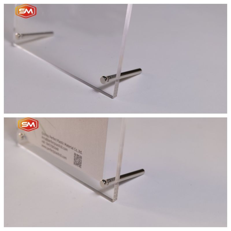 El soporte para fotos transparentes, como este marco, contiene dos paneles de Lucite de 3 mm o 5 mm de espesor y 4 juegos de tornillos de unión niquelados.puede cambiar fácilmente sus fotos en dirección vertical u horizontal.